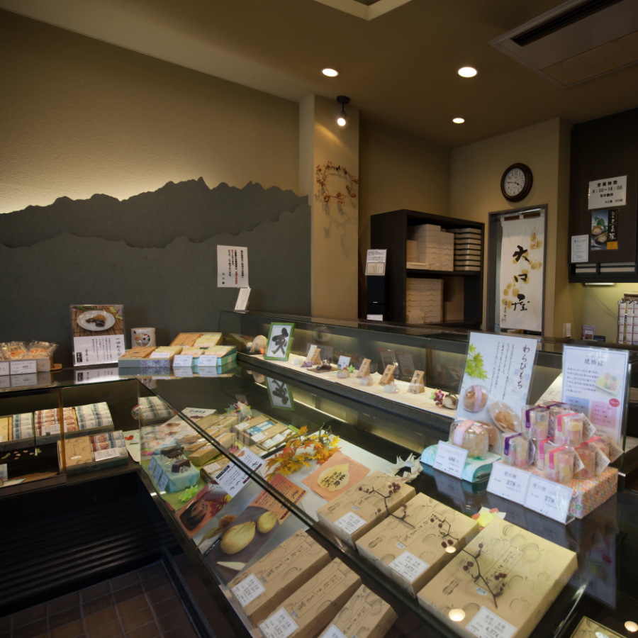 こじんまりとしたお店の中は落ち着いた雰囲気で、こだわりの素材を使った季節感あふれる和菓子を取り揃えております。どうぞ、お気軽にお立ち寄り下さい。