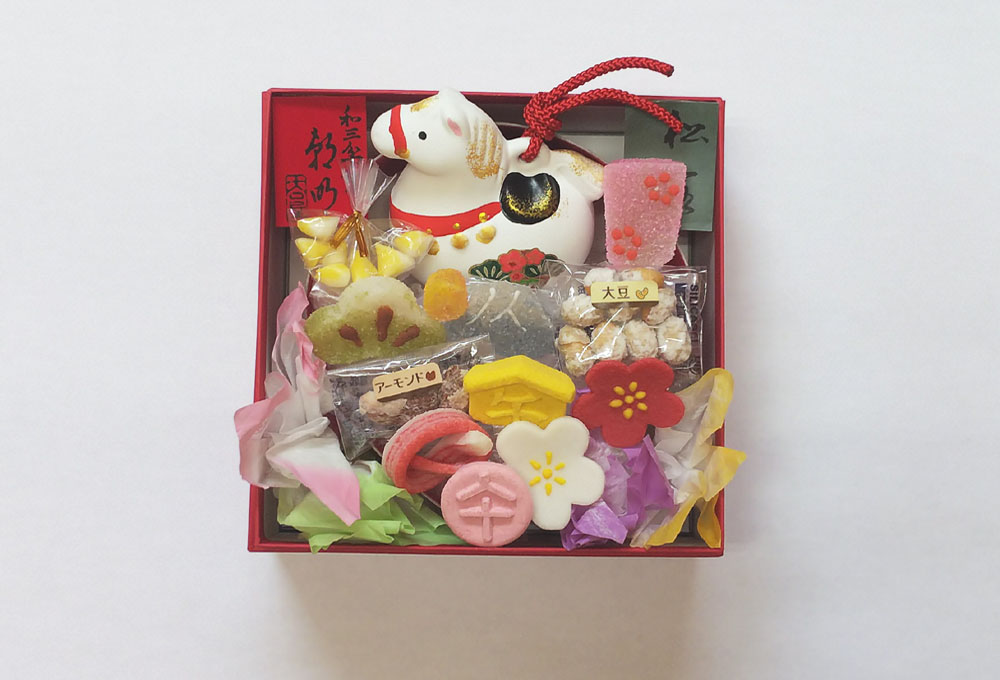 | 初午宝(はつごほう) | 2,376円(税込) 賞味期限:14日間~ 箱寸法:15×15×5.5(cm) ※卵、大豆、アーモンドを使用しております。 ※12月1日からの販売予定です。 |